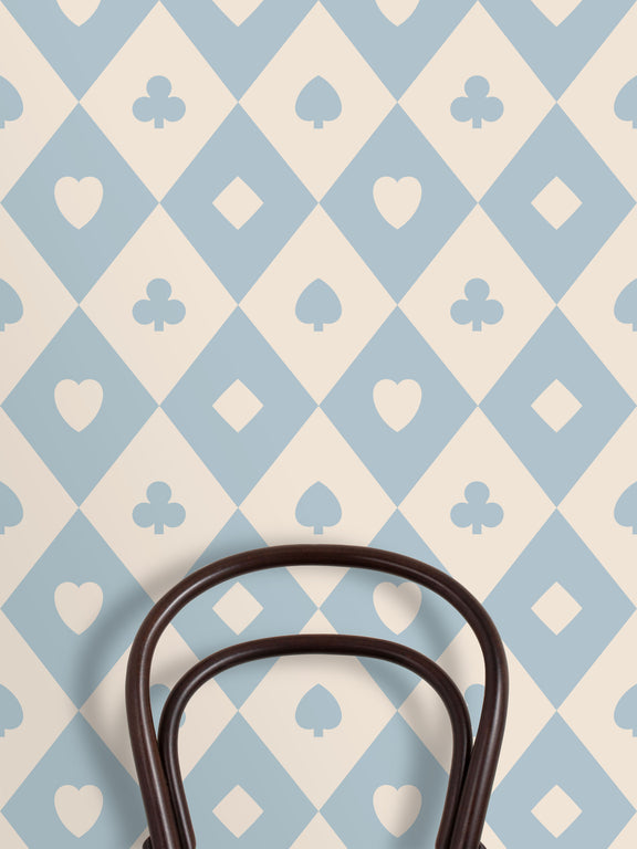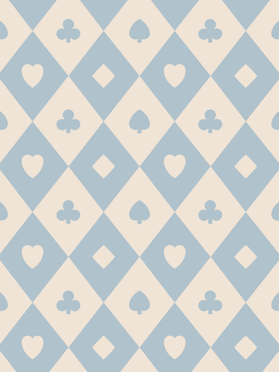 “Damier” is inspried by Grimaud’s classic playing card. Featuring the icons of the four suits and their signature Dolphin Blue, this pattern is playful but sophisticated and timeless.