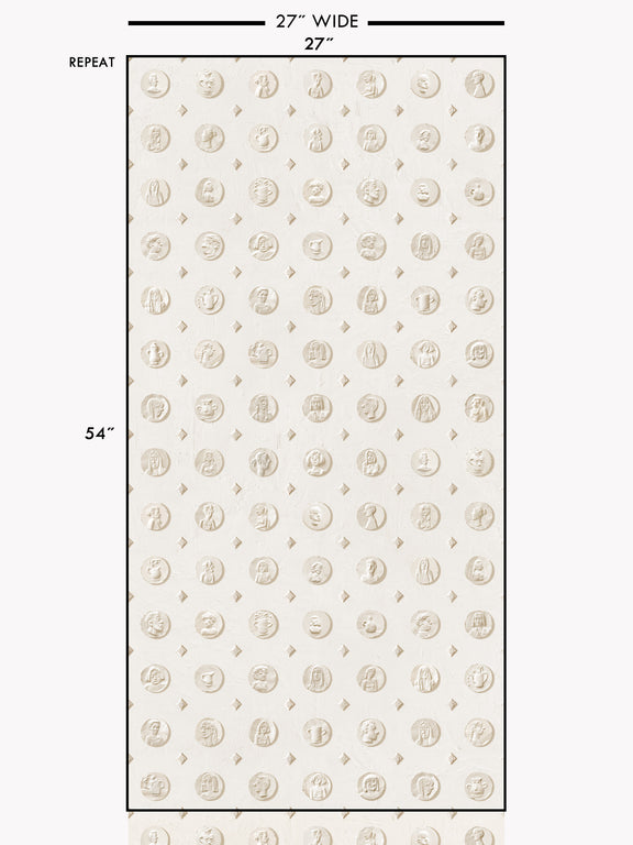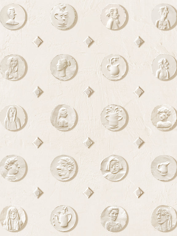plaster reliefs he has made over the years. The pattern includes 57 unique medals on a plaster textured background.